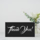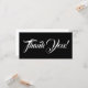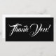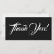 Cette carte de remerciement élégante et glamour présente le message "Merci !" en texte blanc sur un arrière - plan de couleur noire à l'avant, ainsi qu'un message personnalisable à l'arrière. On pourrait l'utiliser pour témoigner sa gratitude à quelqu'un qui a fait quelque chose de bien.