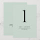 Aidez vos invités à trouver leur table avec ce numéro de table moderne vert élégant. Carte double face. Libérez de l'espace tout autour en vous donnant la liberté d'afficher avec le support de table ou le cadre. Arrière - plan vert sage attrayant et texte noir. Plusieurs options de couleur. Cartes et menus assortis disponibles. Ayez tous les numéros de table dans la même couleur ou mélangez les couleurs selon le thème de couleur de votre événement. Une partie de notre collection "Earth Tones Event Signs and Products" avec une variété de produits de coordination disponibles.
