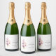 Un étiquette de bouteille de vin mousseux, joliment décoré, orné de délicates fleurs d'aquarelle dans des tons pastel doux. La typographie élégante et la disposition minimaliste créent une atmosphère sophistiquée et romantique, idéale pour les mariages, les anniversaires et les fêtes spéciales. Entièrement personnalisable avec les noms, la date et les détails personnels pour rendre votre événement encore plus mémorable.