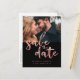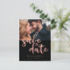 Élégantes Cartes Postales de Faire-Part de Date à Sauvegarder avec écriture script en feuille de rose gold fausse dans une police à coup de pinceau tendance sur fond noir classique et élégant. Ajoutez facilement votre propre photo et détails pour un faire-part de fiançailles mémorable !