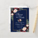 Moderne Élégant, Aquarelle Fleurs Bourgogne Marsala Bleu, Or Faire-part de Mariage