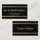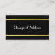 Un arrière - plan noir se trouve sur cette carte d'adresse. Une ligne d'or fausse (pas de feuille) est au-dessus et au-dessous du texte. Personnalisez vos cartes avec votre nom et adresse. L'autre côté dit "Changement d'adresse".
