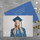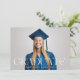 Faire-part moderne de graduation avec la photo horizontale de fond du diplômé sur le devant avec "Graduate" affiché dans une élégante superposition de texte blanc. Personnalisez l'avant et l'arrière pour en faire votre propre. 1 photo parfaite pour l'obtention d'un diplôme d'études secondaires ou collégiales.