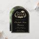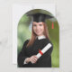 Faire-part classique en arc de cercle noir de diplôme de l'université qui présente "Classe de" dans une illustration dorée d'une couronne de laurier incorporant un casquette et un diplôme, et le nom du diplômé dans un élégant script en or clair. Ajoutez leur école, leur major, leurs honneurs ou leurs plans d'avenir dans la simple typographie de l'or. La photo du grad remplit le dos de la carte.