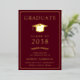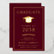 Élégant faire-part de graduation rouge bordeaux avec votre choix de véritable feuille d'or ou d'argent, une casquette de graduation et simple typographie moderne pour le nom du diplômé, année de classe, collège ou université, diplôme et majeure ou distinctions.
