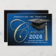 Cette faire-part de graduation en bleu foncé ou l'invitation de la fête de graduation est parfaite pour tout collège, lycée ou tout diplômé de niveau. Le design classique est composé de bleu foncé et de lettres d'or. Un style traditionnel idéal pour des cérémonies de grand format ou des fêtes de famille. Super Facile à personnaliser avec vos informations.