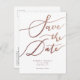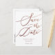 Élégante et moderne carte de faire-part de mariage avec un texte calligraphié à la main qui dit "Sauver la Date" en or faux sur fond blanc. Au verso de la carte, vous pouvez ajouter un bref message sur votre relation et votre excitation pour votre célébration de mariage. Ce design typographique est simple mais élégant !