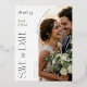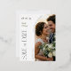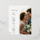 Capturez la magie de votre jour spécial avec cette élégante carte "save the date" de mariage à motif de feuille d'aluminium. Caractérisée par une belle police de caractères cursifs et des accents de feuille d'aluminium scintillants, cette carte donne le ton pour une célébration romantique et inoubliable. Le design intemporel met magnifiquement en valeur vos noms et la date du mariage, avec un espace pour votre lieu et une note sur l'invitation officielle à suivre. Faites une première impression durable sur vos invités avec cette annonce sophistiquée et accrocheuse. Ce "save the date" est parfait pour les couples qui planifient un mariage classique et chic.