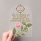 Célébrez votre amour dans le style avec cette superbe faire-part de mariage acrylique claire avec une rose rose rose délicate et une élégante typographie or. Personnalisé avec les noms du couple à l'intérieur d'un cadre vintage orné, ce design allie charme acrylique moderne et beauté florale intemporelle. Un choix parfait pour les couples qui souhaitent faire une impression durable sur leur clientèle.