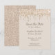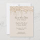 Faire carte plate d'invitation "Save the Date" pour mariage élégante avec fausse brillance de couleur champagne qui dégouline sur le devant et fausse brillance de champagne supplémentaire au dos. Cette invitation de mariage #SavetheDate est livrée avec une enveloppe blanche. Pour un coût supplémentaire, une enveloppe doublée de fausse brillance assortie peut être commandée ici : https://www.zazzle.com/z/a3k4w3ws?rf=238504902174953975. Le texte entièrement personnalisable vous permet de rendre cette invitation "Save the Date" unique pour votre mariage ou autre occasion spéciale, comme une fête d'anniversaire, une fête d'anniversaire ou une fête de quinceañera. De 369Design.
