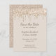 Faire carte plate d'invitation "Save the Date" pour mariage élégant avec fausse brillance de couleur champagne qui dégouline sur le devant et fausse brillance de champagne supplémentaire au dos. Cette invitation "Save the Date" pour mariage est livrée avec une enveloppe blanche. Pour un coût supplémentaire, une enveloppe assortie avec fausse brillance à l'intérieur peut être commandée ici : https://www.zazzle.com/z/a3k4w3ws?rf=238504902174953975. Le texte entièrement personnalisable vous permet de rendre cette invitation "Save the Date" unique pour votre mariage ou autre occasion spéciale, comme une fête d'anniversaire, une fête d'anniversaire ou une fête de quinceañera. De 369Design.