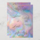 Élégant faire-part de mariage couleur nacre avec des fioritures complexes. Le fond de nacre scintille de nuances colorées, ajoutant une touche d'élégance iridescente. Entièrement monogrammé dans une écriture grise sophistiquée, vous permettant de personnaliser les détails comme vous le souhaitez.