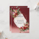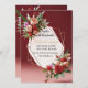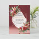 Elégante faire-part de mariage fleurie printanière avec vos noms et détails mariages encadrés par des accents géométriques de feuille d'or faux, des fleurs d'aquarelle et des feuilles verts luxuriants. Un choix moderne qui conviendra parfaitement aux mariages du printemps et de l'été.