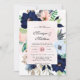 Le design présente un élément floral imprimé de couleur bleu marine, bleu poussiéreux et rose vif, avec un arrière - plan en toile d'aquarelle. Calligraphie ou écriture type avec l'illustration de conception. Il s'agit d'une pièce de collection mixte et de correspondance. Idéal pour vos célébrations mariages !