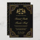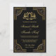 Éblouissez vos invités avec cette faire-part de mariage dorée ornée d'une élégante bordure dorée et de lotus dorés contre un arrière - plan noir. Ajoutez simplement les détails de votre événement sur ce modèle facile à utiliser pour en faire une invitation unique. Retournez la carte pour révéler un beau motif de triangles d'or au dos de la carte. Cette invitation est entièrement personnalisable. Tous les textes sont modifiables et la couleur arrière - plan peut être facilement changée selon ce qui vous convient le mieux.