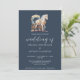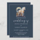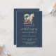 Elégant Cheval tiré de transport Faire-part de mariage. Rejoignez-nous pour une célébration élégante pendant que nous échangeons des voeux entourés des riches teintes d'un mariage romantique. Notre mariage vous propose un magnifique mélange d'une calèche tirée par un beau cheval blanc aux couleurs bleues romantiques, le tout accentué par le charme intemporel de la calligraphie script. Venez profiter de la chaleur et de l'élégance de la saison avec nous pour cette journée spéciale.