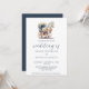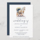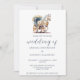 Elégant Cheval tiré de transport Faire-part de mariage. Rejoignez-nous pour une célébration élégante pendant que nous échangeons des voeux entourés des riches teintes d'un mariage romantique. Notre mariage vous propose un magnifique mélange d'une calèche tirée par un beau cheval blanc aux couleurs bleues romantiques, le tout accentué par le charme intemporel de la calligraphie script. Venez profiter de la chaleur et de l'élégance de la saison avec nous pour cette journée spéciale.