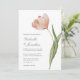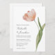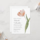 Cette invitation de mariage simple et élégante comprend une simple tige de tulipe à l'aquarelle de pêche. Personnalisez vos détails importants tels que les noms, la date du mariage, l'heure et l'emplacement dans une élégante typographie de script.