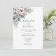 Il s'agit d'un élégant faire-part de mariage fleuri aux fleurs d'aquarelle rose pâle, bleu poussiéreux et lavande sur un arrière - plan blanc. Il est parfait pour une plage romantique, l'été et mariage de jardin.