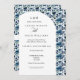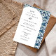 Invitation vos proches pour célébrer votre journée spéciale avec cette élégante invitation de mariage avec une frontière florale bleue sophistiquée. La mise en page classique et épurée combine des polices de caractères serif intemporelles et gracieuses, en mettant en valeur vos noms et les détails de l'événement pour un look raffiné et romantique. Parfait pour les mariages traditionnels ou modernes, cette invitation est entièrement personnalisable avec vos informations de mariage pour créer un faire-part mémorable