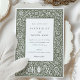 Les motifs complexes et naturalistes de William Morris inspirent ce faire-part de mariage magnifiquement conçu. L'invitation présente un motif floral élaboré dans une riche palette de vert de forêt, de sauge, d'olive et d'olives, évoquant l'élégance de la nature avec une touche sophistiquée. L'oeuvre florale résume le charme du mouvement Arts et Artisanat, avec chaque détail minutieusement travaillé pour créer une esthétique intemporelle et romantique. Parfait pour les couples à la recherche d'un mélange d'art classique et de design moderne, cette invitation donne le ton à un mariage baigné de beauté et de grâce. Un papier de haute qualité garantit que chaque invitation est aussi luxueuse qu'elle en a l'air, offrant à vos invités un souvenir tangible de votre journée spéciale.