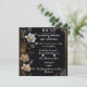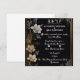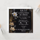 Ce luxueux design de faire-part de mariage est orné d'un arrière - plan noir sophistiqué, agrémenté de délicats motifs floraux. Les fleurs blanches, grises et dorées qui composent l'invitation, créent une esthétique raffinée et intemporelle. La bordure dorée ajoute une touche d'opulence, ce qui en fait un endroit idéal pour un décor mariage haut de gamme et des affichages d'invitation. Idéal pour la vente croisée d'accessoires de mariage, de papeterie et d'éléments de décoration, cet élégant design sert de modèle polyvalent pour les articles sur le thème du mariage. Ses motifs floraux classiques mais modernes offrent un cadre époustouflant pour un texte personnalisé, qui enrichit à la fois les invitations de mariage et les décorations d'événements.