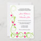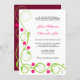 © Designs socialites. Elégant tourbillon vert et fuchsia faire-part de mariage prêt à être personnalisé avec vos propres informations. Choisissez parmi plusieurs types de papier d'invitation différents.