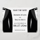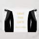 Élégant faire-part de mariage gay noir et blanc avec texte en feuille d'or véritable sur le devant et texte noir interchangeable au verso de la carte