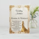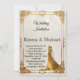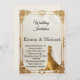 Un luxueux faire-part de mariage avec cadre fleuri doré orné, arrière - plan en ivoire, et élégante silhouette mariée et mariée en or chatoyant. Idéal pour les couples à la recherche d'une élégance intemporelle et d'un style papeterie mariage haut de gamme.