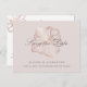 Informez vos invités de votre mariage à destination, à la plage ou sur une île tropicale avec ces magnifiques cartes de faire-part estivales présentant une illustration de fleur d'hibiscus en feuille d'or rose sur un fond rose pastel doux. L'écriture grise élégante et les lettres majuscules affichent les détails de votre mariage (noms, date et lieu); utilisez le verso pour partager des détails supplémentaires comme votre site web de mariage. Les cartes postales sont réversibles pour afficher des détails supplémentaires de faire-part, y compris votre site web de mariage, avec votre adresse de retour et un espace pour l'adressage du destinataire, accentué de deux coquillages dorés supplémentaires.