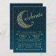 Il a été écrit dans les étoiles... Célébrez votre Mariage avec cette invitation unique à la lune de dentelle. Élégante lune d'or céleste avec étoiles sur un arrière - plan de ciel bleu nuit sombre. Le Sentiment Art Déco.