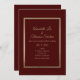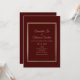 Elégante faire-part de mariage de canneberge minimaliste. Lumière, design et raffiné. Le cadre métallique doré apporte une touche de grâce. Personnalisez-le avec votre propre texte mariage.