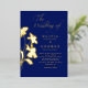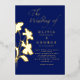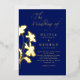 Ce design élégant a du texte et des fleurs avec de la feuille métallique de votre choix, l'or s'harmonise parfaitement avec le bleu foncé profond.