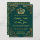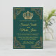 Éblouissez vos invités avec ce faire-part de mariage à thème royal avec une élégante bordure dorée et une belle couronne contre un turquoise arrière - plan sombre. Ajoutez simplement les détails de votre événement sur ce modèle facile à utiliser pour en faire une invitation unique. Retournez la carte pour révéler un beau motif au dos de la carte. Cette invitation est entièrement personnalisable. Tous les textes sont modifiables et la couleur arrière - plan peut être facilement changée selon ce qui vous convient le mieux.