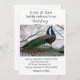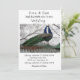 Capturez l'essence de l'élégance et de la beauté naturelle grâce à cette faire-part de mariage étonnante avec une paire de paons majestueux perchés gracieusement sur un toit. Le plumage vibrant et les motifs de plumes complexes créent un spectacle à couper le souffle. L'arrière - plan présente des branches d'arbres nues contre un ciel nuageux. Les paons symbolisent la beauté, la grâce et l'amour, ce qui en fait une représentation appropriée pour une célébration mariage.