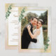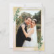 Faites de votre journée spéciale une journée inoubliable avec cette faire-part de mariage exquise. Avec une photo personnalisée sur le devant. Cet élégant design est encadré par une parties scintillant dorée chatoyante et des feuilles d'eucalyptus verdoyants. Un mélange parfait de romantisme classique et de style contemporain, cette invitation donne un ton sophistiqué à toute votre collection mariage. Customisez le dos avec tous les détails de votre événement.