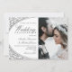 Luxe, chic, élégant, faux argent noir et blanc faire-part de mariage avec photo et script de calligraphie moderne.