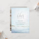 Un élégant faire-part de mariage avec un modèle de photo, représentant une peinture aquarelle d'une plage océanique sauvage. Un choix charmant à thème côtier pour un mariage sur la plage ou une réception sur la plage.