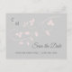 Élégantes et modernes cartes de faire-part SAVE THE DATE à envoyer à vos invités. Calligraphie de script gris avec des feuilles délicates de rose blush (branche). Couleur de fond gris. Modèles personnalisés en ligne pour faciliter l'édition. Ajoutez votre texte à l'avant et à l'arrière de la carte. Contactez le designer pour des demandes spéciales.