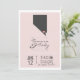 faire-part de mariage rose et blanc chic, avec un Las Vegas gris, silhouette du Nevada au coeur. L'arrière de l'invitation présente un design rose vif.