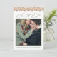 Carte élégante de faire-part de mariage avec calligraphie moderne verte sauge et photo rétro avec dentelle rustique et toile de jute.