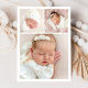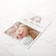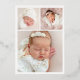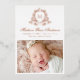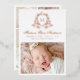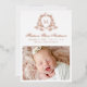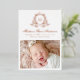 Fêtez l’arrivée de votre bébé avec cette élégante carte de faire-part de naissance en feuille d’or rose. L’avant présente le monogramme initial de votre bébé encadré par une étonnante crête florale rose en feuille d’or sur un arrière - plan blanc. Le nom complet de votre enfant brille dans la coordination de la calligraphie rose de feuille d’or, avec l’espace ci-dessous pour les statistiques de naissance, le nom de famille et une photo horizontale de nouveau-né. Le dos présente un collage trois photos assorti, parfait pour partager d’autres moments précieux de votre bébé. Personnalisez avec les détails de votre bébé pour créer un souvenir luxueux pour votre famille et vos amis.