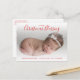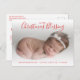 Annoncez la naissance de votre nouveau bébé garçon ou fille avec cette carte postale de faire-part photo moderne avec le message, "Notre petite bénédiction de Noël" dans une élégante police d'écriture rouge en haut et le nom et les statistiques de naissance de votre bébé en bas, sur votre photo horizontale préférée. Le côté arrière a votre message personnel et votre adresse de retour pour faciliter l'envoi.