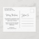 Annoncez la naissance de votre nouveau bébé garçon ou fille avec cette carte postale de faire-part photo moderne avec le message "Joyeux Noël" dans un élégant script blanc avec votre nom de famille et l'année sur votre photo horizontale préférée. Le côté arrière a votre message personnel en noir sur un arrière - plan blanc et votre adresse de retour pour faciliter l'envoi.