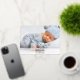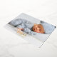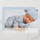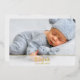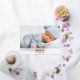 Une élégante carte de faire-part de naissance moderne avec un revêtement en feuille véritable dans votre choix d'or, d'argent ou rose. Téléchargez votre propre photo pour créer une carte unique célébrant votre nouveau bébé garçon. Pour compléter simplement customiser le nom, la date et les statistiques de naissance, et ajouter un message personnel.