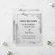 Personnalisé Élégant Argent Enregistrer La Carte Date. Le design avec des feuilles argentés, des éléments d'aquarelle argentée en blanc. Affichez les éléments correspondants dans la collection "Elegant Silver Feuille Mariage".