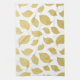 NewParkLane - Élégante serviette de cuisine, avec motif de feuilles dorés, contre un arrière - plan blanc.