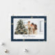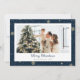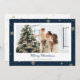 Elégantes cartes de Noël bleues avec chute de neige, flocons de neige et étoiles. Personnalisez facilement cette carte bleue de vacances photo avec votre image préférée, un nom de famille et un texte.