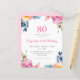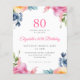 Célébrez votre 80e anniversaire avec nos belles et élégantes invitations en papier fleuri de printemps! Dotés d'une étonnante aquarelle de fleurs colorées sur un arrière - plan blanc propre, ces invitations en papier abordables sont parfaites pour toute célébration printanière ou estivale. L'élégante lettrage calligraphie ajoute une touche de sophistication et de charme à votre occasion spéciale. Nos invitations peuvent être personnalisées. Que vous planifiez une réunion intime avec votre famille et vos amis ou une grande fête avec tous vos proches, nos invitations sont la meilleure façon de commencer vos festivités d'anniversaire.