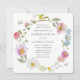 A beautiful Wedding invitation featuring a delicate watercolor floral wreath with pastel flowers and butterflies. The soft colors and elegant script create a romantic and timeless design, perfect for celebrating.